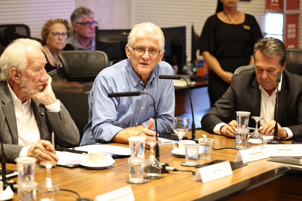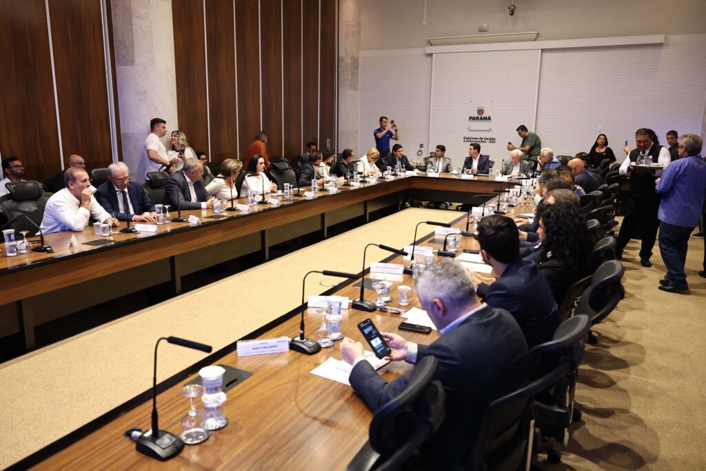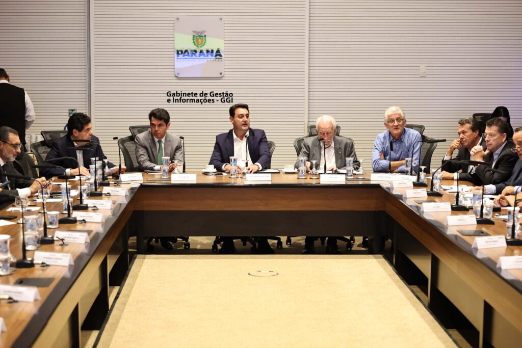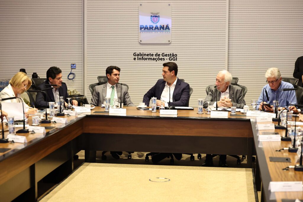 PRESENÇAS – Participaram da reunião o vice-governador Darci Piana; o chefe da Casa Civil, João Carlos Ortega; os secretários estaduais da Fazenda, Norberto Ortigara; Agricultura e Abastecimento, Márcio Nunes; Trabalho, Qualificação e Renda, Do Carmo; o presidente da Invest Paraná, Eduardo Bekin; o presidente da Assembleia Legislativa do Paraná (Alep), Alexandre Curi; o líder do Governo na Alep, Hussei Bakri; os deputados estaduais Luiz Claudio Romanelli, Marcelo Rangel, Batatinha, Evandro Aráujo, Cobra Repórter, Marcia Huçulak, Mabem Canto, Nelson Justus, Moacyr Fadel, Adão Litro e Ademar Traiano.